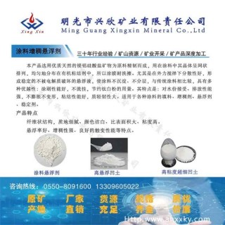 本品用采用优质非金属矿物为原料精加工而成,具有高粘结性、优异的悬浮性和胶体触变性,其特点是粘结性强、悬浮性好、耐磨耗、耐温、耐火、耐腐蚀,在工作介质中具有惰性和稳定性。广泛用于各种高中低档涂料悬浮剂、增稠剂。
