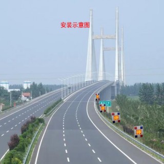 1.停字爆闪预警装置设置于路侧。设计速度 120 公里每小时的高速公路,在桥梁路段前 500 米范围内,设风险点提示标志,并间隔 20 米设置爆闪警示装置;设计速度 100 公里每小时的高速公路,在桥梁路段前 300 米范围内,设风险点提示标志,间隔 20米设置爆闪警示装置。