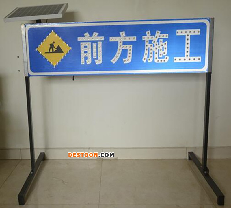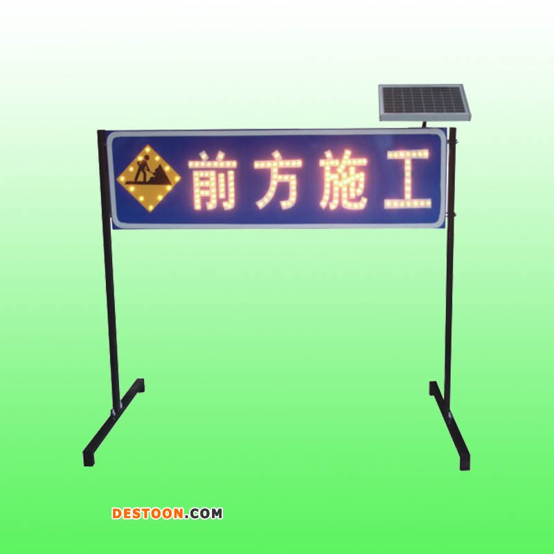 太阳能前方施工标志牌由LED灯、灯箱、太阳能板、反光膜等材料制作而成。太阳能前方施工标志牌又叫做交通标牌,太阳能标志牌,太阳能施工诱导牌,交通诱导牌,太阳能警示牌。交通标牌。太阳能施工诱导牌使用寿命长,节能环保。
