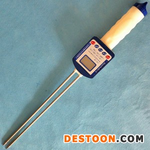 把探杆插入粮食中,插到手柄根部,根据所测粮食品种,从表盘读出指针相应的指示值,加减温度校正值,即为所测粮食水分测量值。