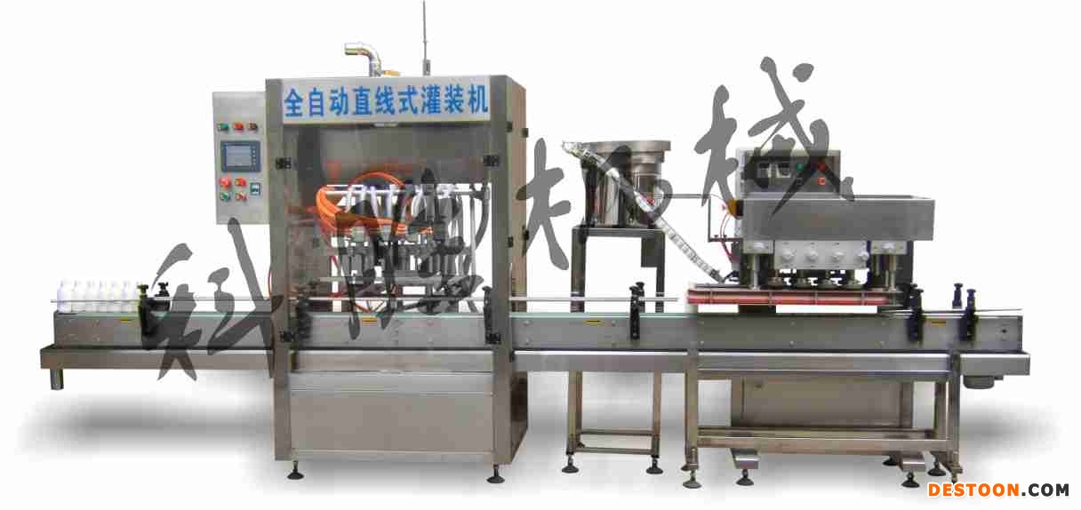 三型铝箔感应机 + 活塞式灌装机 + TB-90LR立式贴标机 + X007自动旋盖机 + 送瓶机