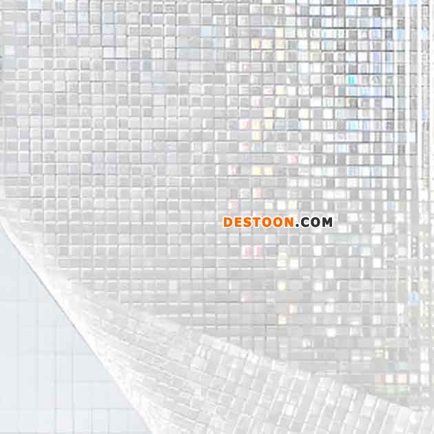 马赛克玻璃膜以玻璃为基料,呈乳浊或半乳浊状光泽,其断面通常为楔形,背面带有锯齿状沟纹,通过着色 - 烤干 - 切片 - 烧烤 - 退火 - 表面处理六项工艺制作而成。