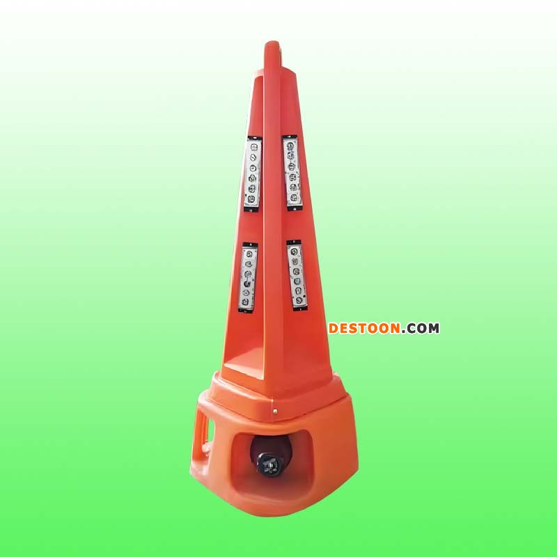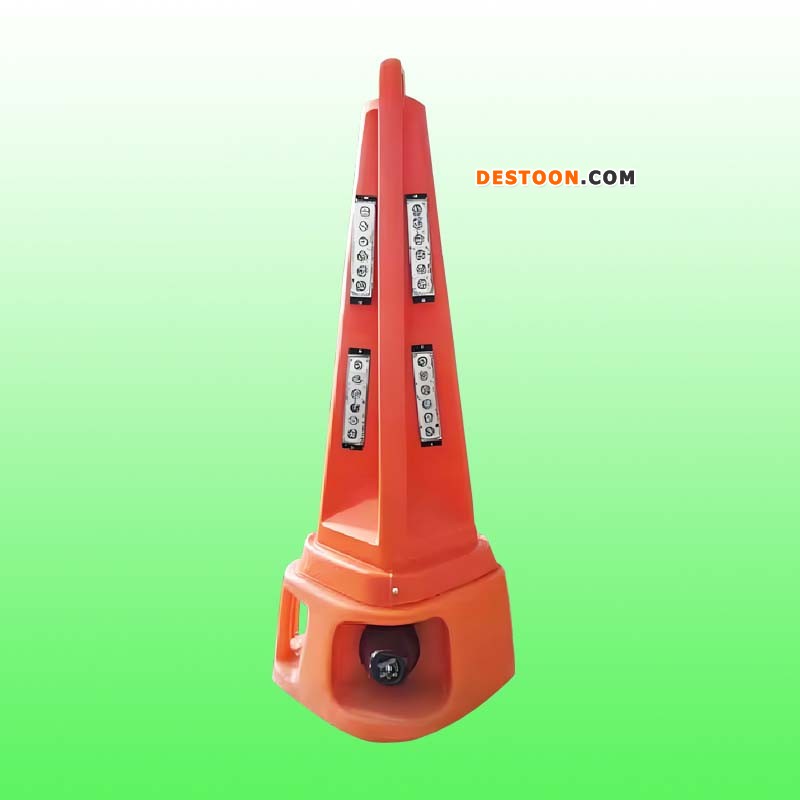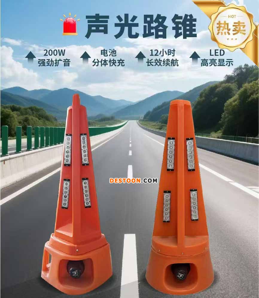 90高声光路锥是一款新一代“声音+红蓝闪灯”的双预警模式警示路锥,可以灵活运用于危险区域、交通管制、施工作业等安全警示场合,提高交通事故处设置、恶劣天气预警、道路临时交通管制和施工作业区规范设置等安全警示设备智能化水平,对于疏导道路交通秩序、提高道路通行能力、预防道路交通事故的发生具有明显效果。
