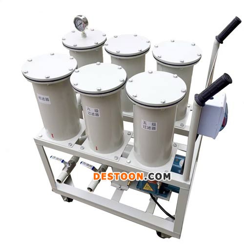LJL精密滤油机设有六级逐级加密的五层加强型精密过滤芯,轻便灵活、操作方便、不用滤纸、不污染场地、能精细过滤油中的各种杂质。是电力、石化、冶金、机械、铁路等各行业对绝缘油、润滑油、液压油、淬火油、清洗油、冷冻油、防锈油、导热油等油品的高精度除杂,手推式设计,移动方便,特别适合于远距离、加油、抽油及过滤使用。整机外形尺寸很小,它除了小型高效、轻便灵活外,还具有装拆容易,清洗方便,使用中不漏油的特点,克服了传统的板框式滤油机换滤纸时,不可避免要漏油污染场地的致命弱点。传统的板框压力式滤油机需购买大量的滤纸,还要自己打孔,一次少则换十张,多则数十张,油中含水量较大时则十多分钟就需更换一次,否则,一旦纸被击穿,杂质必将穿过滤纸混入被净化的油中,导致前功尽弃。因其采用寿命极长的精密过滤系统(逐级加密式过滤芯),滤芯表面罩上一层复合材料做的高强度的精密过滤膜,当精滤系统杂质堵塞后,可将其拆御下来清洗后再装上去(可反复清洗使用),使其拆装、清洗方便、省事,工艺独特、操作简单。