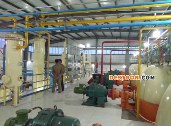 萃取原油→过滤→脱胶→脱酸→脱色→脱臭→→脱蜡→灌装→成品油