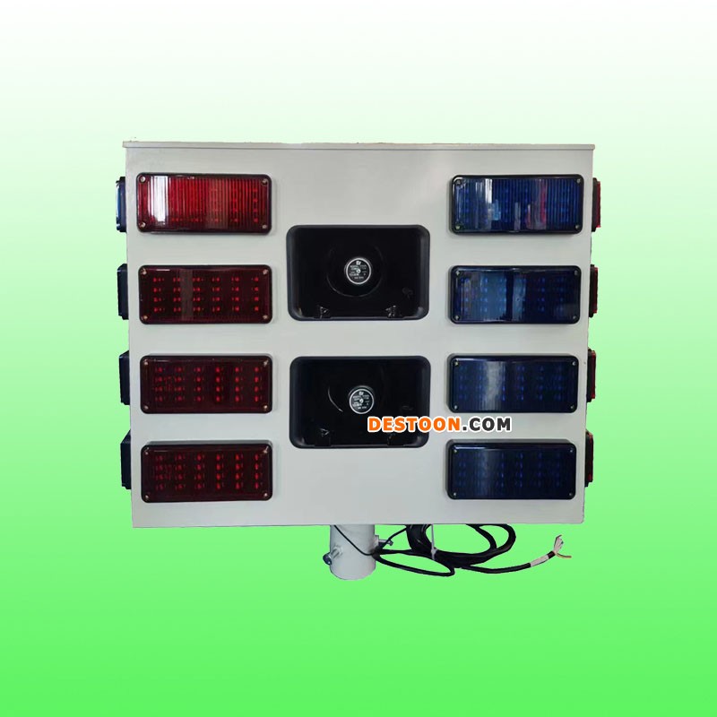 远程声光预警设备主要由32个警示灯和4个大功率警报喇叭组成。可视距离远,警示效果好等特点。可通过4G远程控制平台/手机APP管理设置设备运行模式。有效起到预警、预防交通事故。提示前方路况、天气、车辆分流提醒等功能。提高高速公路管理部门应急处理方案以及现场作业人员的自身安全。
