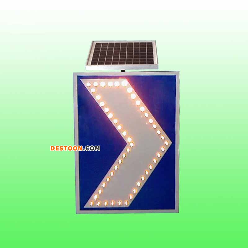 太阳能诱导标志是以单晶硅太阳能电池组件为能源,它利用太阳能电池板将白天的阳光转换成电能贮存于蓄电池中,当夜幕降临、视线昏暗或雨雾天气等视线不佳情况下,线性诱导标志牌上的发光二极管自动启动闪烁,通过LED发出亮光来勾画图案轮廓,传达交通信息。主动发光线性标志发出的光线特别明亮、醒目,具有强烈的警示作用。在无电源的高速公路、经常移动的施工现场及危险地段,这种可主动发光的交通标志显现出了强大的作用,其可视距离是以反光膜作为反光材料的标志牌的数倍,其动感效果也是普通标志牌所不可替代的警示效果。特别在现代的城市道路中,夜晚驾驶者很难迅速认清被淹没在霓虹灯光、广告灯箱中的传统交通标志,此时发光标志的主动发光性能显得尤为重要。