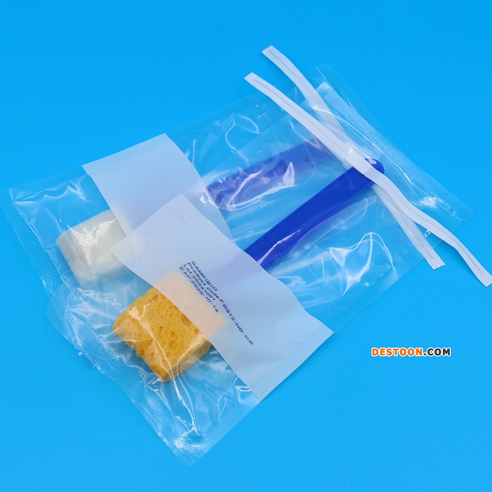产品构成:海绵涂抹棒+缓冲溶液+无菌采样袋+封口铁丝+一次性手套等。