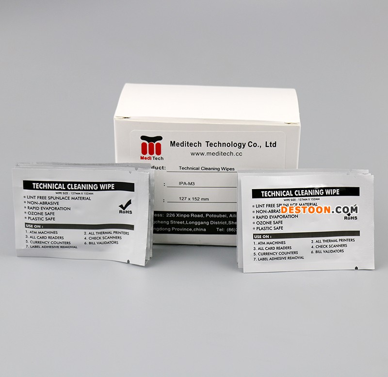 清洁布浸泡99.9%的ipa溶液,可以用于清洁维护证卡打印机和热敏打印机的打印头。
