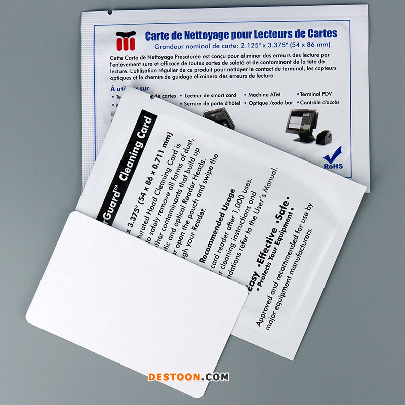 产品用途:Zebra、Datacard、Evolis、Magicard、Fargo等多种证卡打印机及ATM机、POS终端、读卡器、自动取票机、门锁、IC卡加油机、刷卡器等磁卡读卡设备的清洁维护,减少设备出现故障的频率,延长设备的使用寿命。