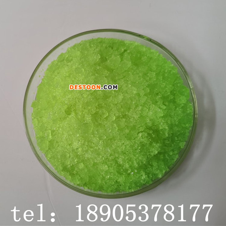 外观性状:绿色结晶体,易溶于水和乙醇,有潮解性,密闭保存。