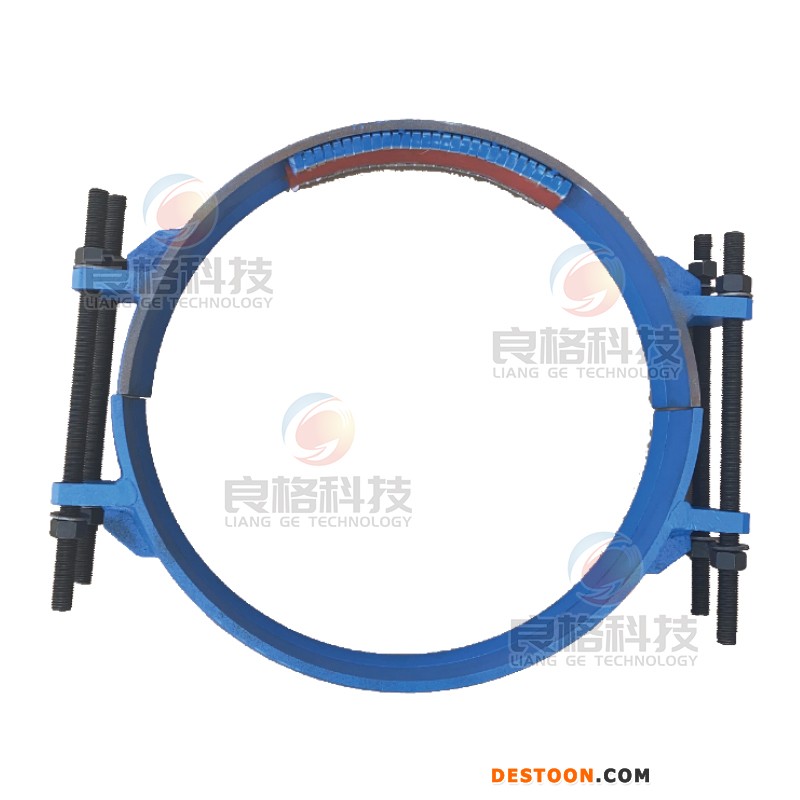 单向半包式补偿器修补器 半包式补偿器修补器的原理是通过拧紧两端螺栓后密封胶垫的挤压封堵对补偿器大小管接口处起到密封作用,因此在生产时,我们需要知道小管(即主管段)的外径,也需要知道整个补偿器的长度,根据补偿器的长度我们确定螺栓长度。单向半包和双向半包同全包的原理一样,区别都是在于另一端一个是法兰一个是修补器。另外特殊情况下,补偿器还有一种情况是大筒的长度过长,高于补偿器大小管的接口处,我们需要把过高的部分切割掉,以便胶垫能够正常触碰并且封堵住漏点出