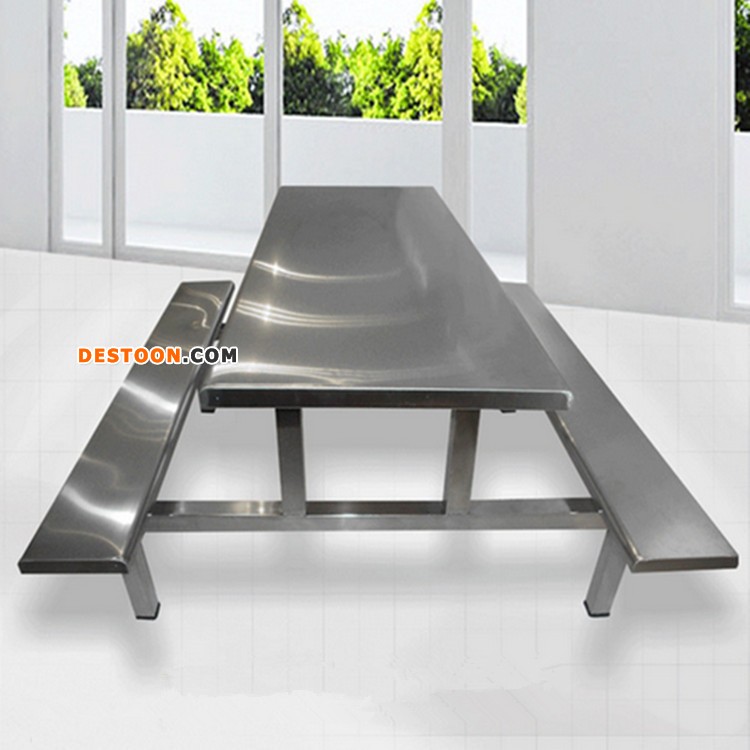 这款餐桌椅选用耐用的304不锈钢材质,配以人性化的连体设计。餐桌表面光滑平整,抗腐蚀性能良好,无论是南方潮湿的梅雨季节,还是东南亚炎热的气候,都能保持洁净如新。每天用餐时间结束后,保洁人员用抹布轻轻擦拭,就能让餐桌焕然一新,大大减轻了后勤工作的负担。
