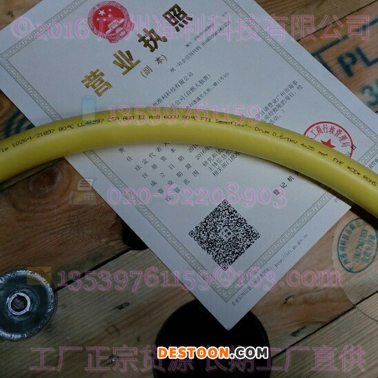 广州准利科技有限公司✆+86 13539761159 ☎+86 2062208903 ✉13539761159@163.com长期供应卷筒电缆FT1 Semoflex-Drum 0.6/1kV低压电力电缆,工厂直销,正宗一手货源,当然更加耐用.本产品由Baude Kabeltechnik GmbH-Lise-Meitner-Str.1-31157 Sarstedt-Germany工厂一手提供,*VDE-REG.-NR.6510 1000 V E195107 cURus AWM Style 10264/20235 80℃ LL46997 CSA AWM II A/B 600V 90℃ FT1 Semoflex-Drum 0,6/1kV 4x25,0 mm² FHF *CE* ROHS C8*弹簧和电动卷筒电缆;*VDE.-REG.-NR.6510 1000 V E195107 cURus AWM Style 10264/21897 80℃ LL46997 CSA AWM II A/B 600V 90℃ FT1 Semoflex®-Drum 0,6/1kV 4x25 mm² FHF *CE* ROHS新标印,弯曲半径≤7.5x电缆外径,每分钟加速度200米.与其他品牌的卷筒电缆相比减小了~40%重量和电缆外径,加速度提升10%,Item Code:130000040 Semoflex® Drum 4x25 mm² gelb Halogenfreie trommelbare Leitung 0,6/1 kV,VDE/UL/CSA标准flammwidrig nach IEC 60332-1-2 Reeling Cable滚筒用高柔韧Reeling卷筒电缆,无卤聚氨酯内/外护套,抗紫外线,耐磨,耐油,抗拉,抗撕裂,广泛应用于干燥或潮湿的室内或户外工作环境下各种起重机,输送带,管片吊,盾构机,航车(天车),卷扬机,龙门吊,物流输送系统与抓斗机等电缆卷筒装置,铁路牵引电机,以及含机械应力循环收放的起重输送设备,建筑工程机械,挖掘掘进设备,成槽机等.Semoflex-Drum 0,6/1kV FHF FK FD系列电缆规格库存齐全,接受定制;FT1 Semoflex® Drum 0.6/1kV常用规格如下: