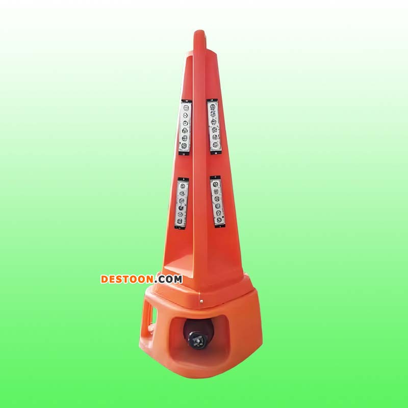 90高声光路锥是一款新一代“声音+红蓝闪灯”的双预警模式警示路锥,可以灵活运用于危险区域、交通管制、施工作业等安全警示场合,提高交通事故处设置、恶劣天气预警、道路临时交通管制和施工作业区规范设置等安全警示设备智能化水平,对于疏导道路交通秩序、提高道路通行能力、预防道路交通事故的发生具有明显效果。