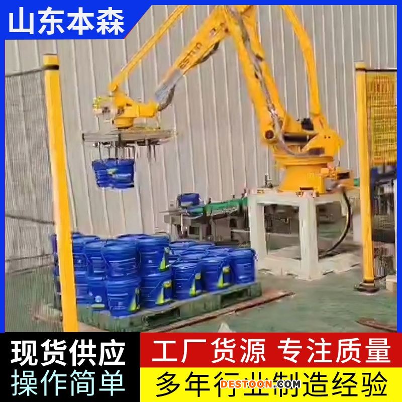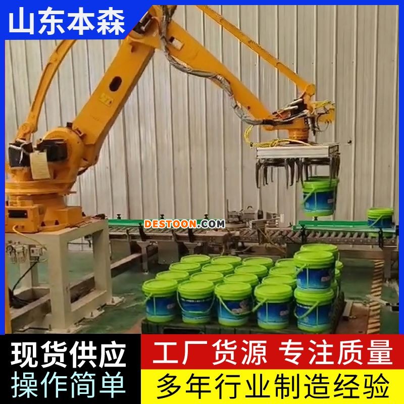 3.智能堆码:根据预设的堆码模式(如纵横交错式、正反交错式、旋转交错式等),自动完成肥料桶的堆码作业。