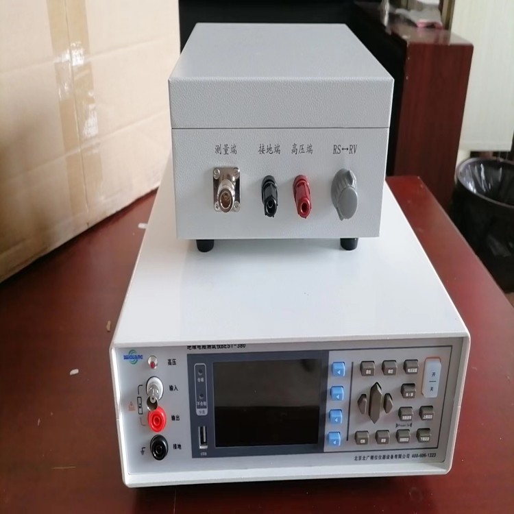 开机一键测试出结果 不用反复设置可设定测量延时和放电延时十种自定义测量模式可以用户自己编辑开机直接调取 满足不同材料的测试需求 量程超限显示 量程上超输入端子 香蕉插头,BNC 插头精度保证期 1年 根据计量证书有效期