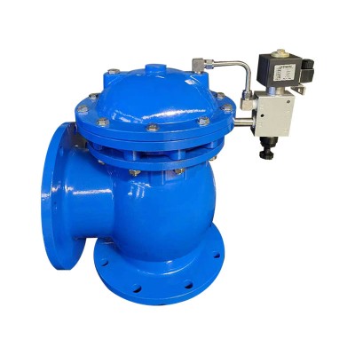 J744X气动、液压角式快开型设计合理,使用方便,密封性能好,经久耐用,该阀利用液压缸和角式截止阀两部分组成,液压缸作为动力带动阀板升降,开启一般只需3秒钟,可清理水池内泥沙和污物,清理后关闭阀板,无渗漏,维修方便,寿命可达2年以上,