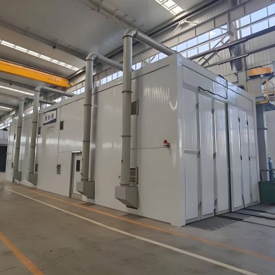 自动喷砂房作为*效表面处理设备,通过机械自动化系统实现喷砂作业的全流程控制。其核心原理包括四部分:工件经输送设备(如辊道、悬挂链)送入指定位置,自动化喷砂机构(固定喷枪或机械臂)按预设程序将磨料(石英砂、钢丸等)以高速气流喷射至工件表面,利用冲击力完成除锈、去氧化皮或表面强化;喷砂后磨料通过螺旋输送机、气力回收装置收集,经筛分、磁选分离杂质后循环使用;同时负压除尘系统(布袋或滤筒除尘器)净化粉尘,**达标排放。该设备广泛应用于汽车制造(车架、轮毂预处理)、工程机械(挖掘机结构件强化)、船舶工业(船体钢板除锈)及轨道交通(火车车厢表面处理)等领域,可显著提升批量处理效率与表面质量一致性。