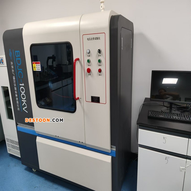 实时监测:检测系统会同步记录试样两端的电压和电流变化。当材料被击穿的瞬间(表现为电流突然增大、电压骤降),仪器会在0.1秒内切断电源。