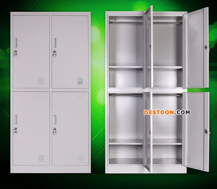 在功能设计上,四个独立的储物单元是这款产品的特色所在。每个单元都配有专属柜门和锁扣装置,方便学生使用个人挂锁管理物品。柜门处设计有均匀分布的透气孔,有助于促进空气流通,保持柜内环境清爽。内部的活动层板支持自由调节,学生可根据物品尺寸灵活调整储物空间。
